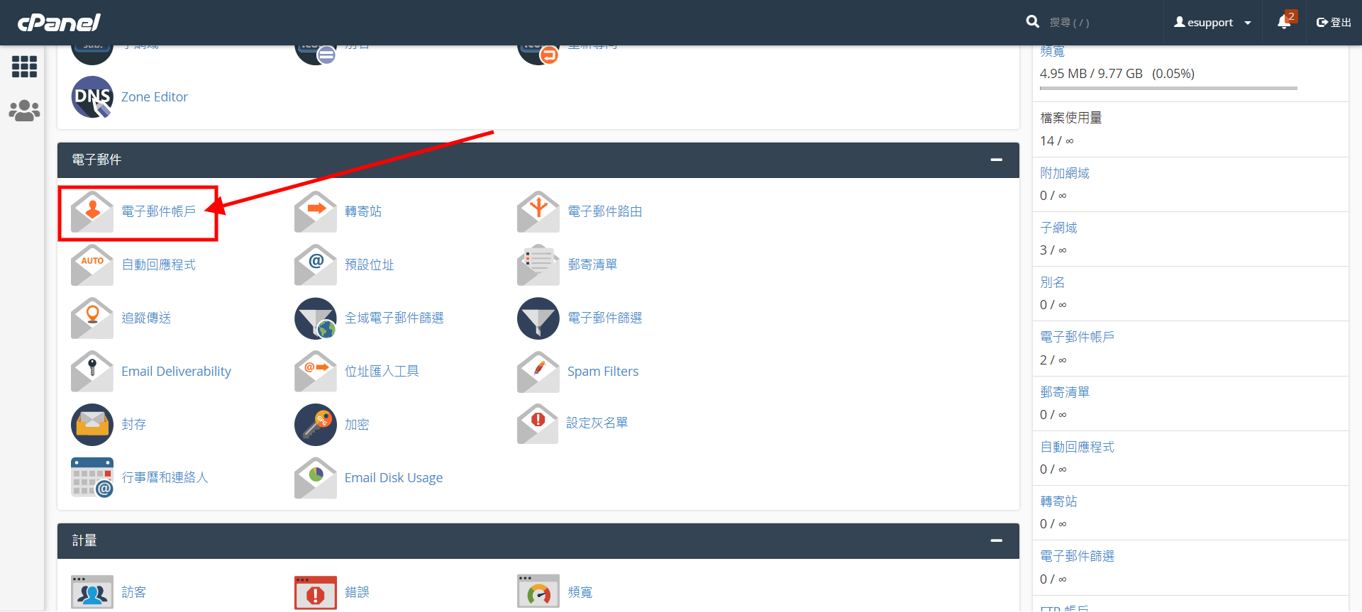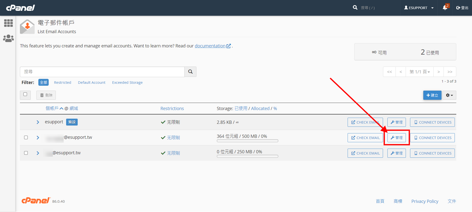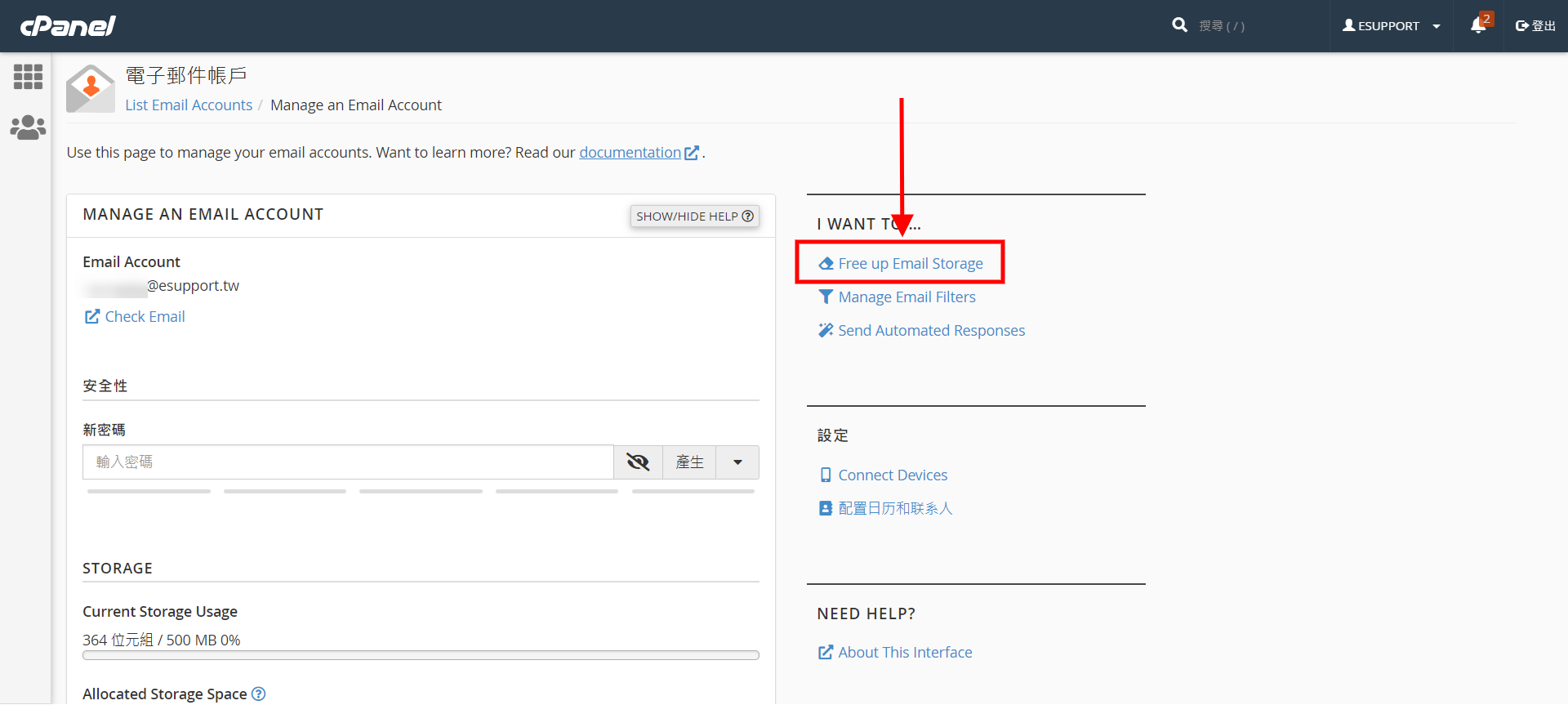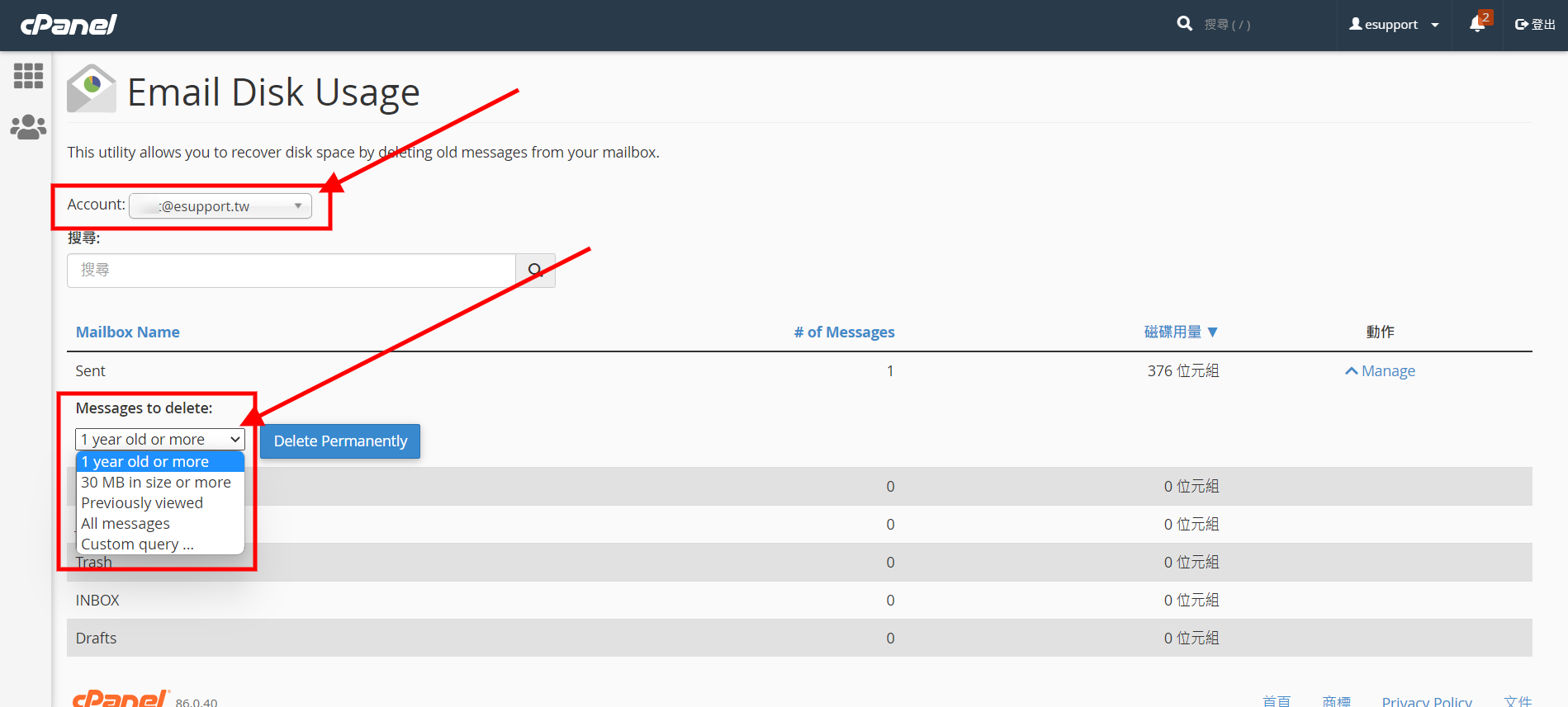 當您使用網路信箱 (webmail.您的網域.com) 或 IMAP 遠端網路方式收發郵件時,會持續造成主機上郵件的累積,使主機上的空間不足,此時,我們可以屆由至 cPanel 主機管理後台內清除不必或已丟進回收桶上的郵件,騰出更多主機空間,讓主機使用更順暢。